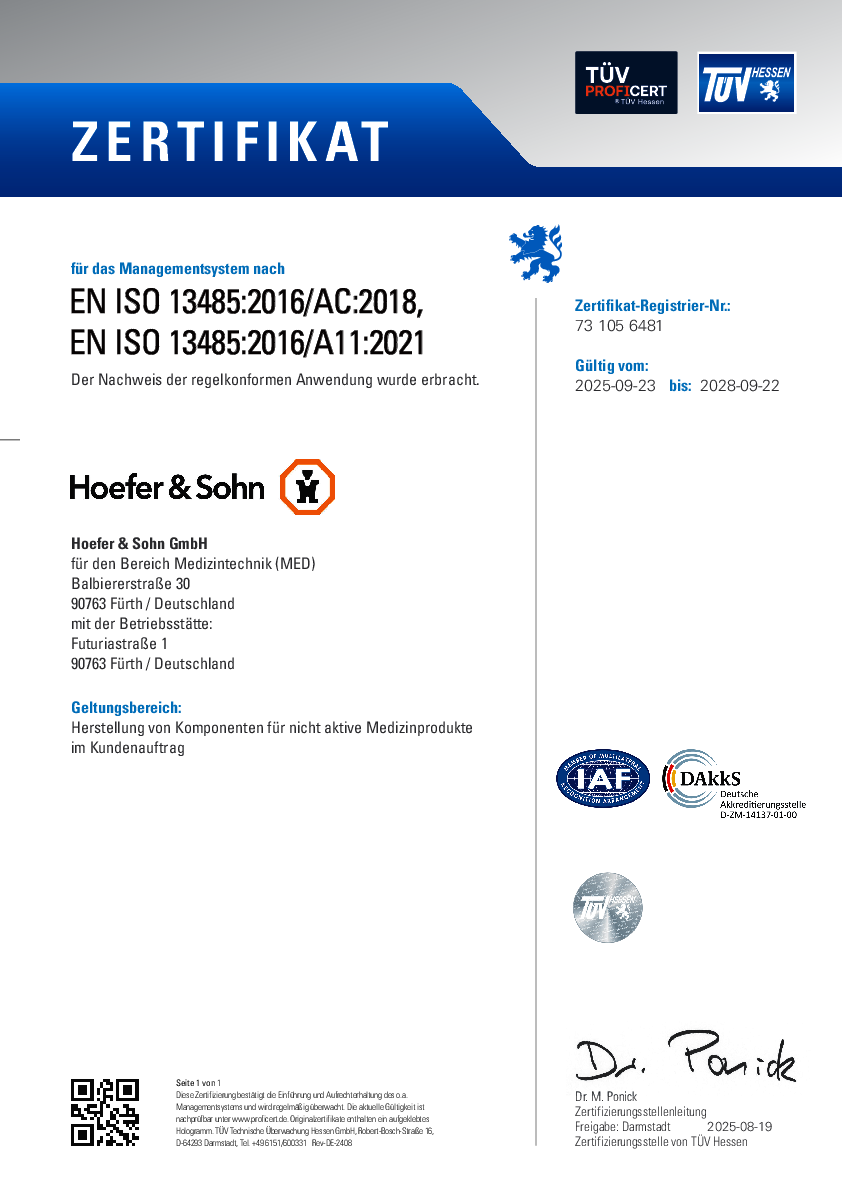 Kein Prozessabschnitt ohne umfassende Prüfung. Serienbegleitende Prüf- und Funktionskontrollen gehören zur Standard-Ausstattung im Hoefer & Sohn Qualitätsmanagement-Programm. Darüber hinaus bietet unser Messlabor die erforderlichen Möglichkeiten, um Bemusterungen und Analysen durchzuführen.