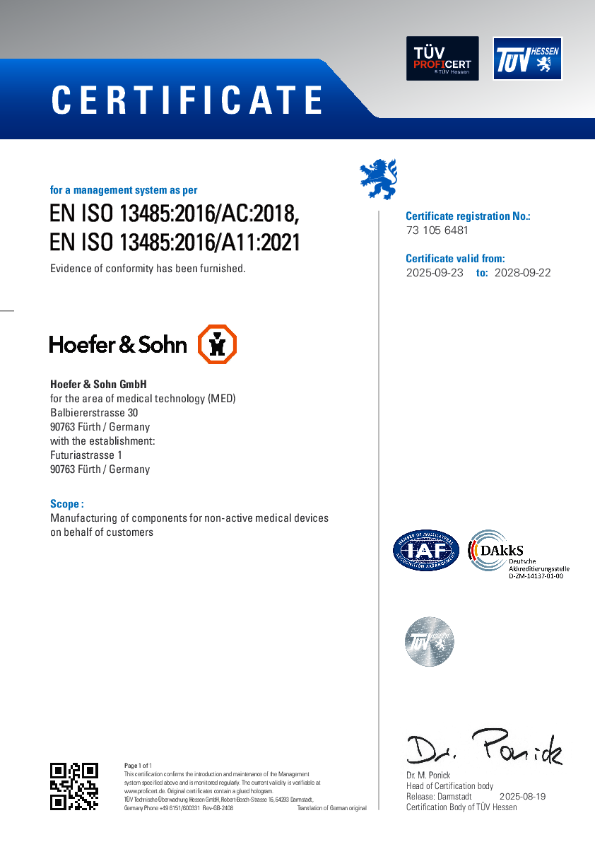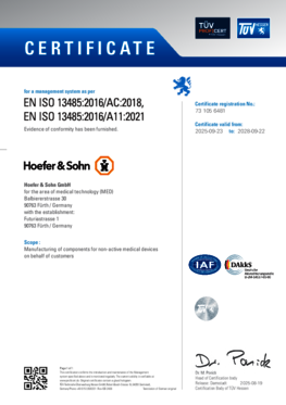No process stage without comprehensive inspection. Serial inspections and functional checks are part of the standard features at the Hoefer & Sohn quality management program. Beyond that, our measurement laboratory provides the required capabilities to conduct sampling and analyses.